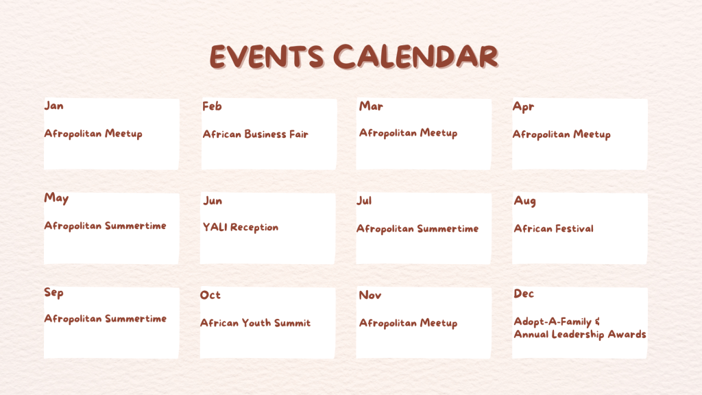 Don’t miss out on the chance to enhance your financial acumen and explore opportunities for financial growth tailored to your specific needs. Check out our events calendar for upcoming dates, including the Annual African Business Fair and the African Youth Summit. These events are not just about financial literacy; they’re about creating a community-driven ecosystem where collaboration leads to growth, and growth paves the way for success.